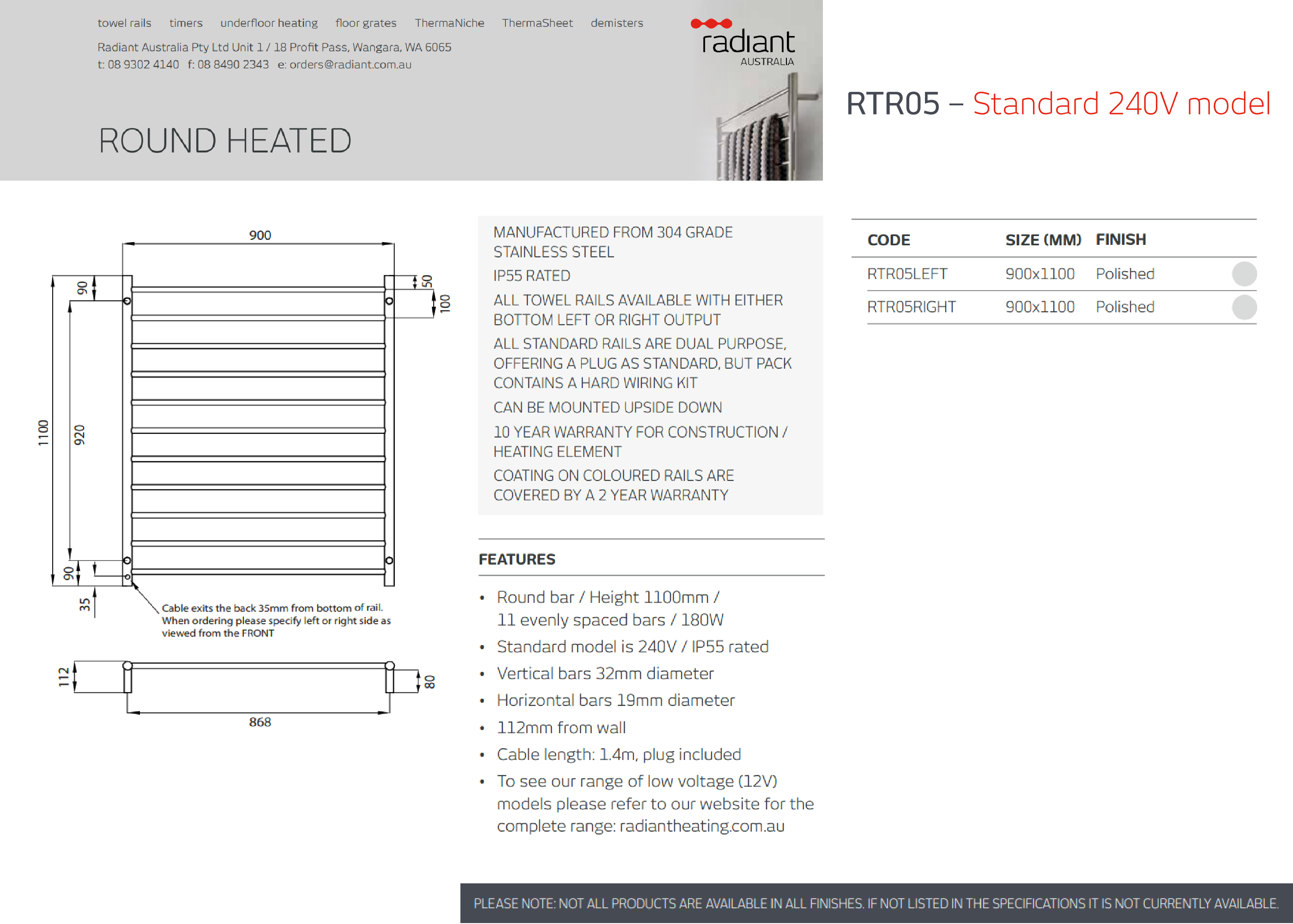 Please Contact Showroom to Check Stock - (08) 9244 2168