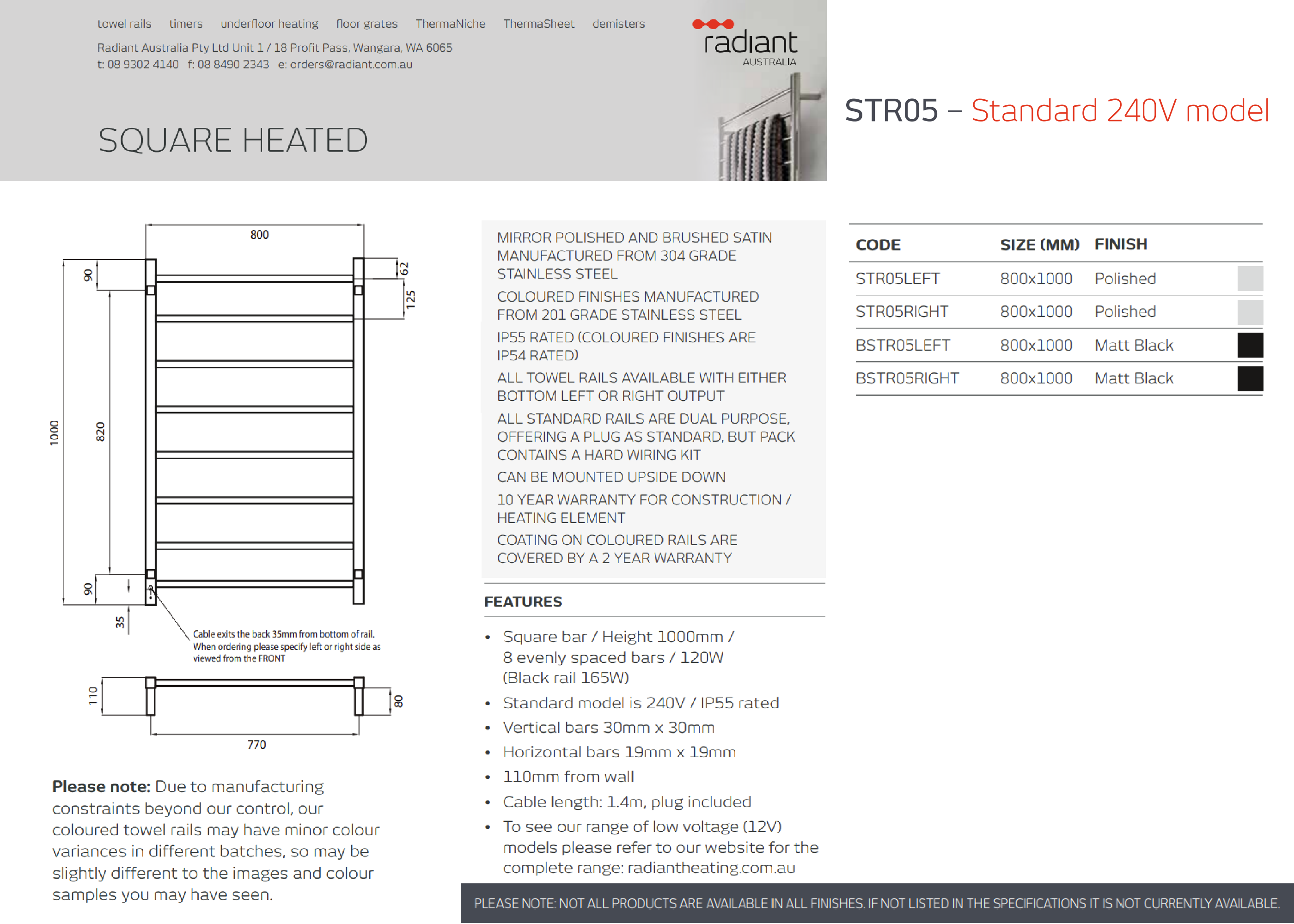 Please Contact Showroom to Check Stock - (08) 9244 2168