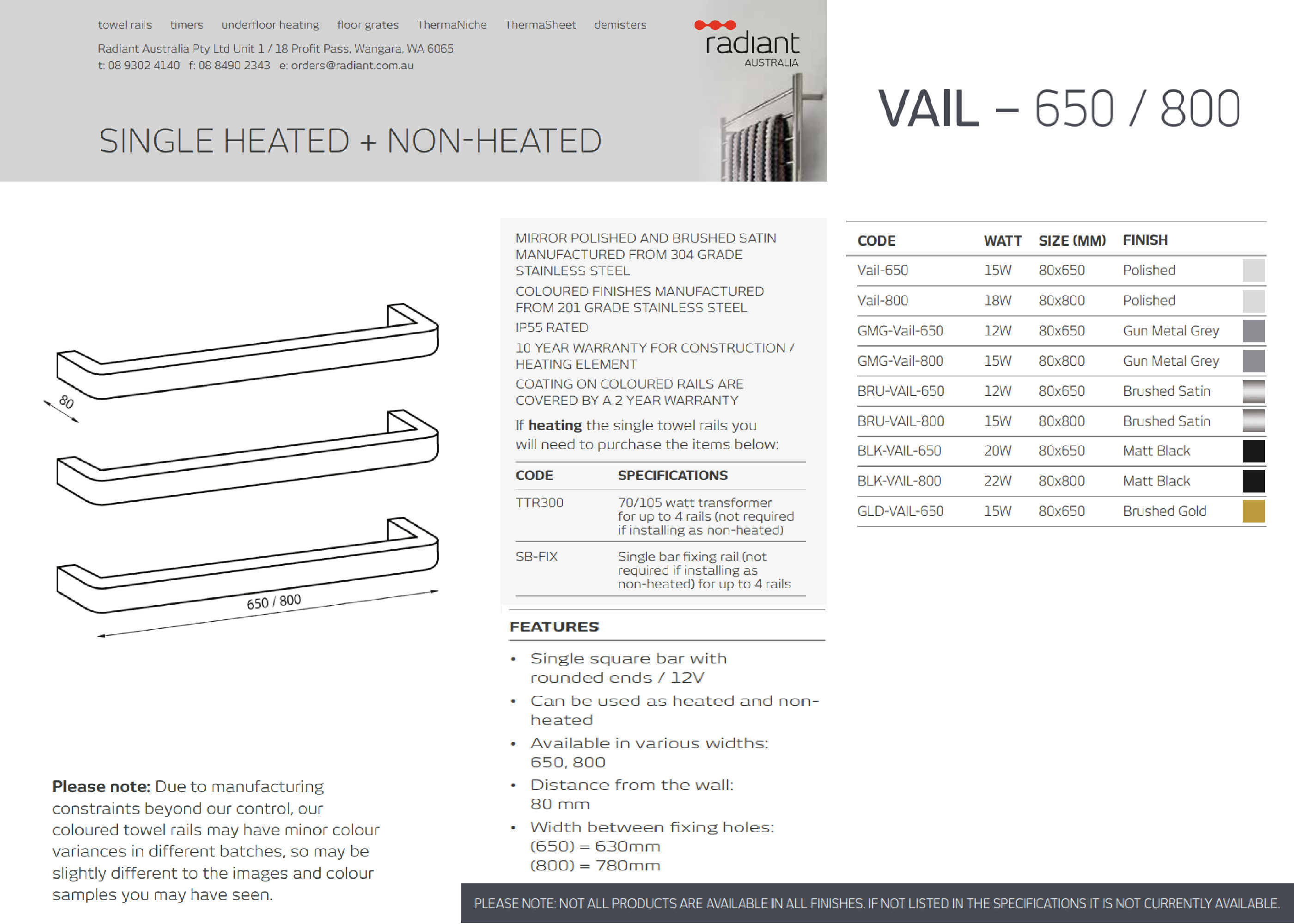 If purchasing 3 or more single bars we will include the elements necessary for heating - In wall fixing bar (SB-FIX) & 70w Transformer (TTR300) - FREE OF CHARGE